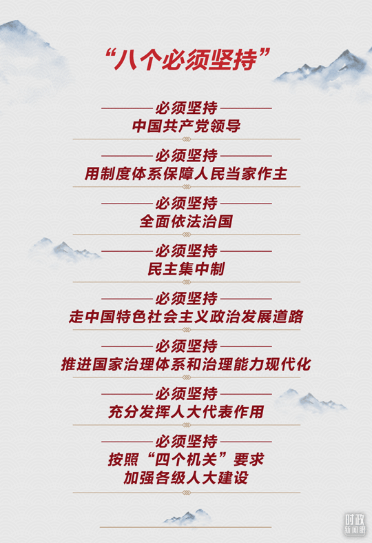 在今年這次大會上,總書記用“八個必須堅持”系統(tǒng)總結(jié)新時代人民代表大會制度理論和實踐創(chuàng)新重大成果。