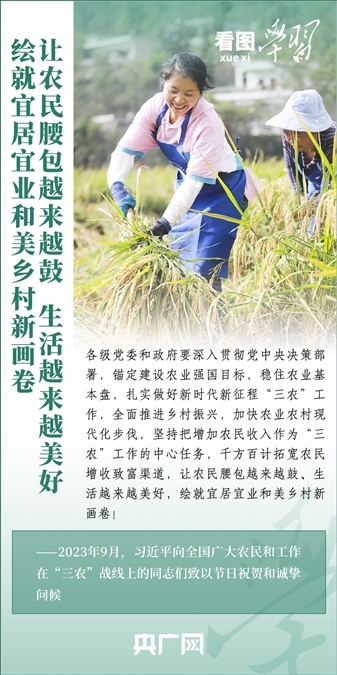 民族要復(fù)興,鄉(xiāng)村必振興。黨的十八大以來,每到各地考察調(diào)研,習(xí)近平總書記總會去農(nóng)村看一看,走進田間地頭,和農(nóng)民拉拉家常??倳洀娬{(diào),“建設(shè)宜居宜業(yè)和美鄉(xiāng)村是農(nóng)業(yè)強國的應(yīng)有之義”,“要讓農(nóng)民腰包越來越鼓、生活越來越美好”。