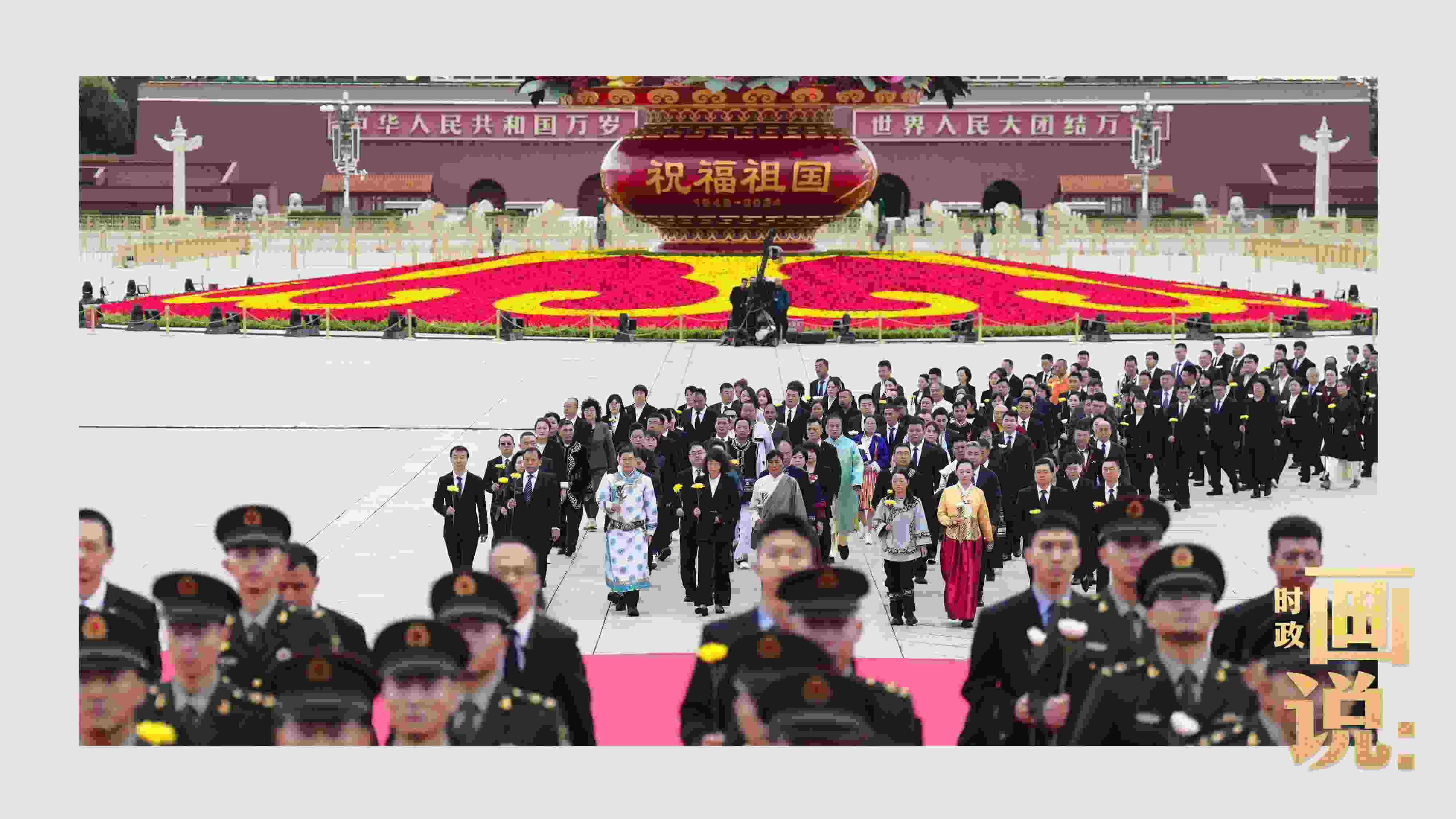 烈士紀(jì)念日向人民英雄敬獻(xiàn)花籃儀式9月30日上午在北京天安門(mén)廣場(chǎng)隆重舉行。黨和國(guó)家領(lǐng)導(dǎo)人習(xí)近平、李強(qiáng)、趙樂(lè)際、王滬寧、蔡奇、丁薛祥、李希、韓正等,同各界代表一起出席儀式。