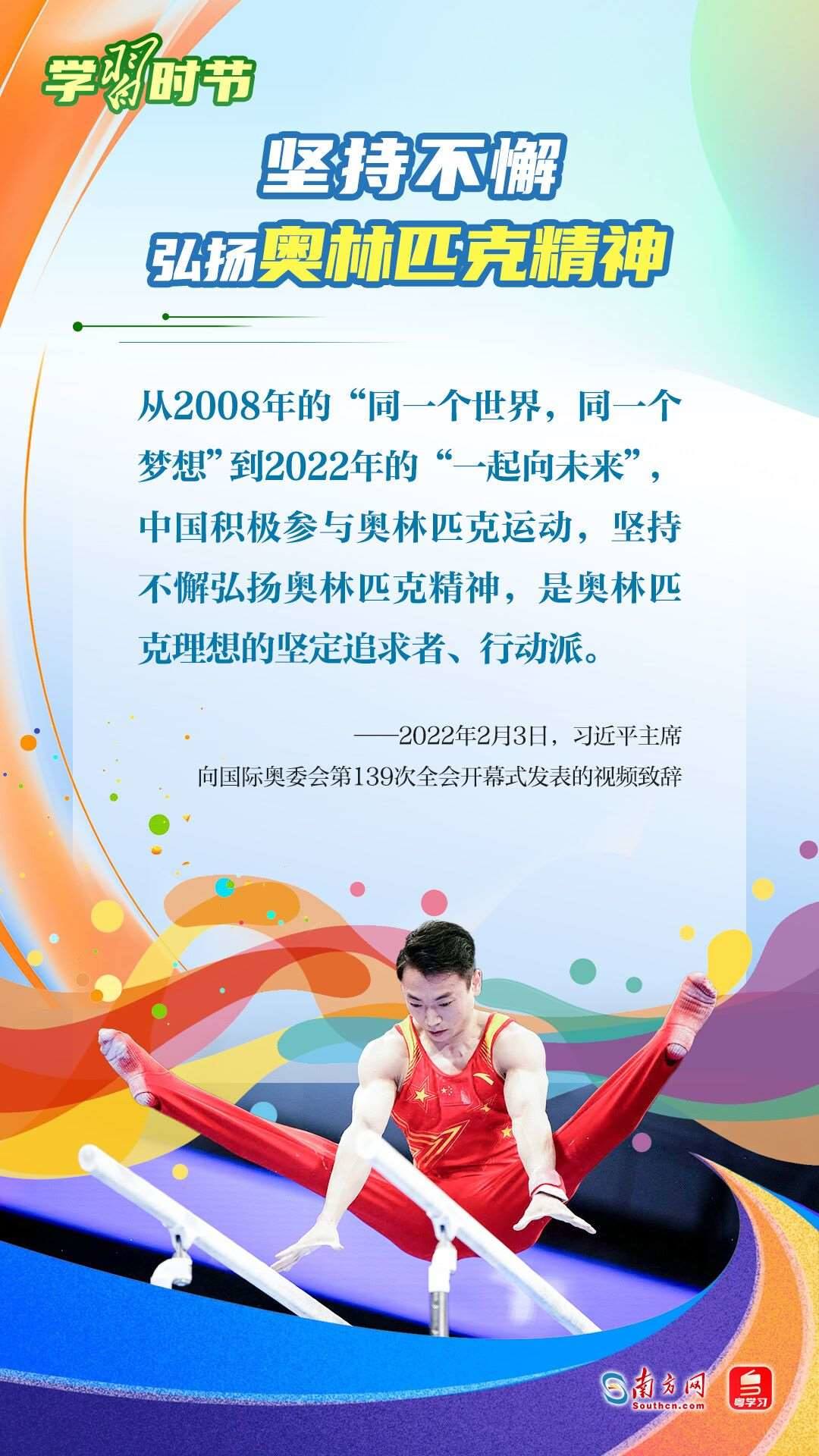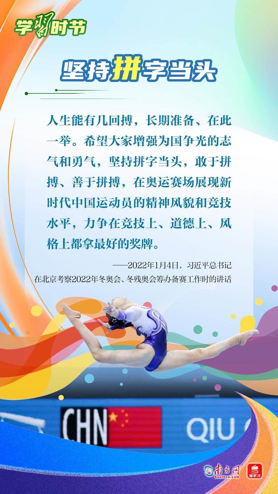 “我們不以勝負論英雄,同時英雄就要敢于爭先、敢于爭第一?!绷暯娇倳浽诓煌瑘龊险撌鰥W林匹克精神,深刻闡明了勝與負、成與敗的辯證關系,對奧林匹克“更快、更高、更強——更團結”的格言進行詮釋。讓我們一同學習習近平總書記對奧林匹克精神的重要論述,心懷夢想、奮勇拼搏,攜手走向美好明天。