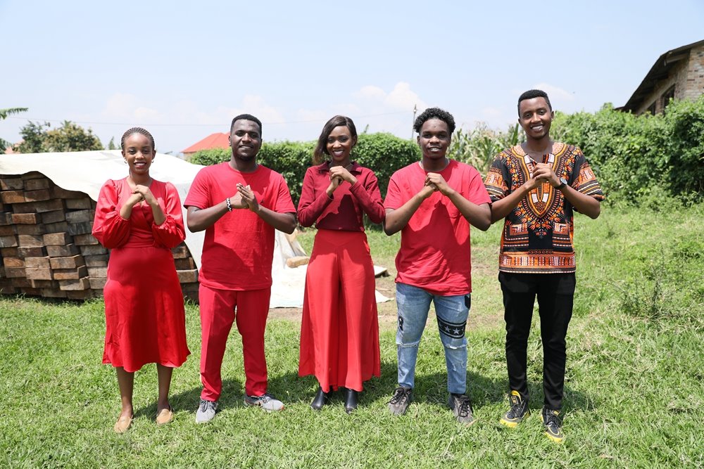 ??2024年2月7日,在盧旺達(dá)南方省卡莫尼地區(qū),盧旺達(dá)青年團(tuán)隊(duì)成員向鏡頭前觀眾送上新春祝福。新華社發(fā)(黃萬晴 攝)