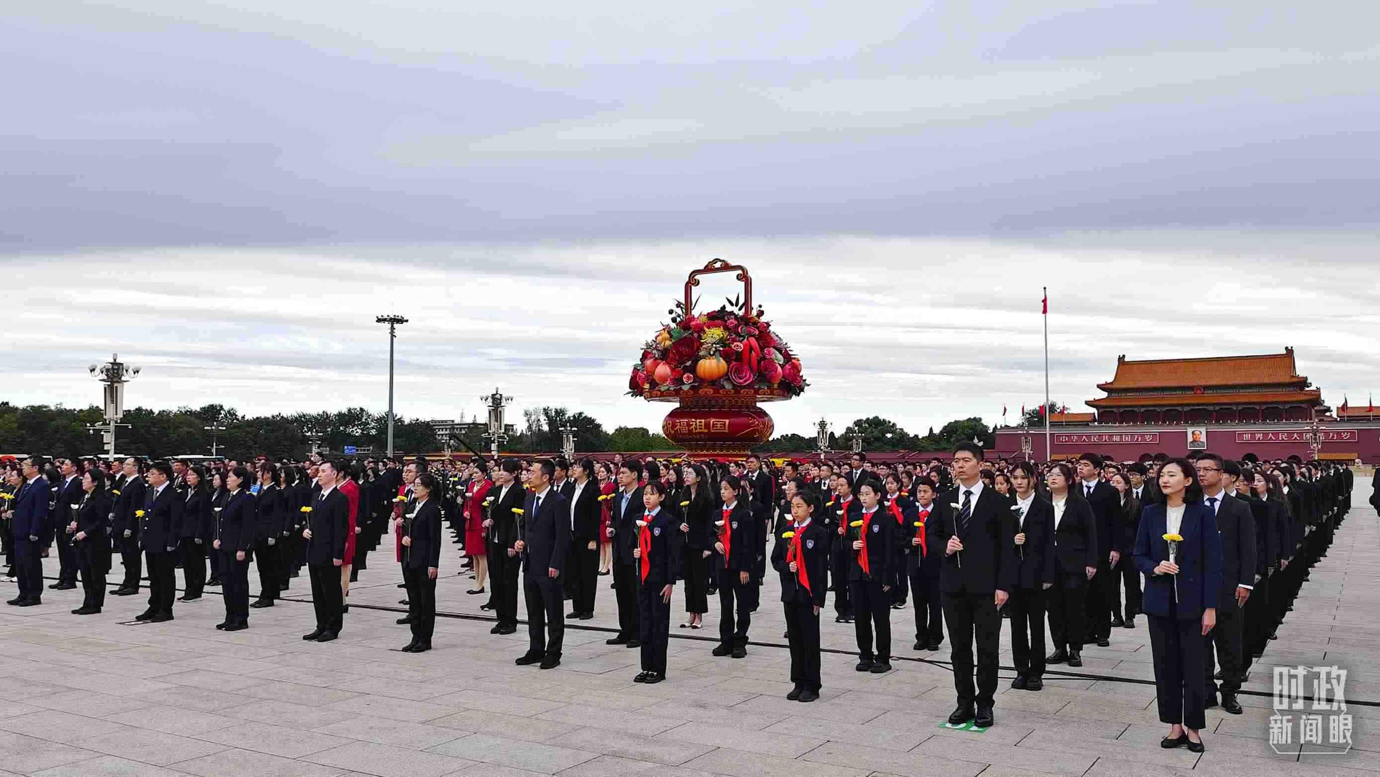 正逢新中國(guó)成立75周年,今年參加儀式的人數(shù)規(guī)模有所增加?!稌r(shí)政新聞眼》現(xiàn)場(chǎng)了解到,相較去年,人民英雄紀(jì)念碑基座上增加了4名禮兵。今年參加儀式的各界代表增至2400多名。