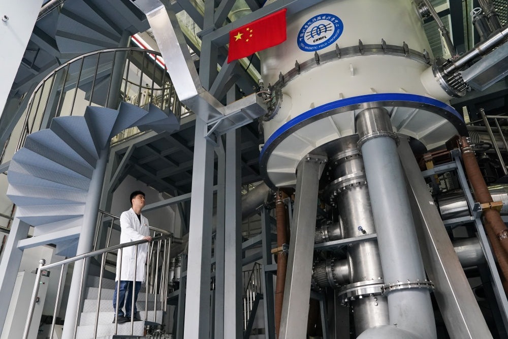 這是在中國科學院合肥物質科學研究院強磁場科學中心拍攝的國家重大科技基礎設施“穩(wěn)態(tài)強磁場實驗裝置”混合磁體(2022年10月17日攝)。