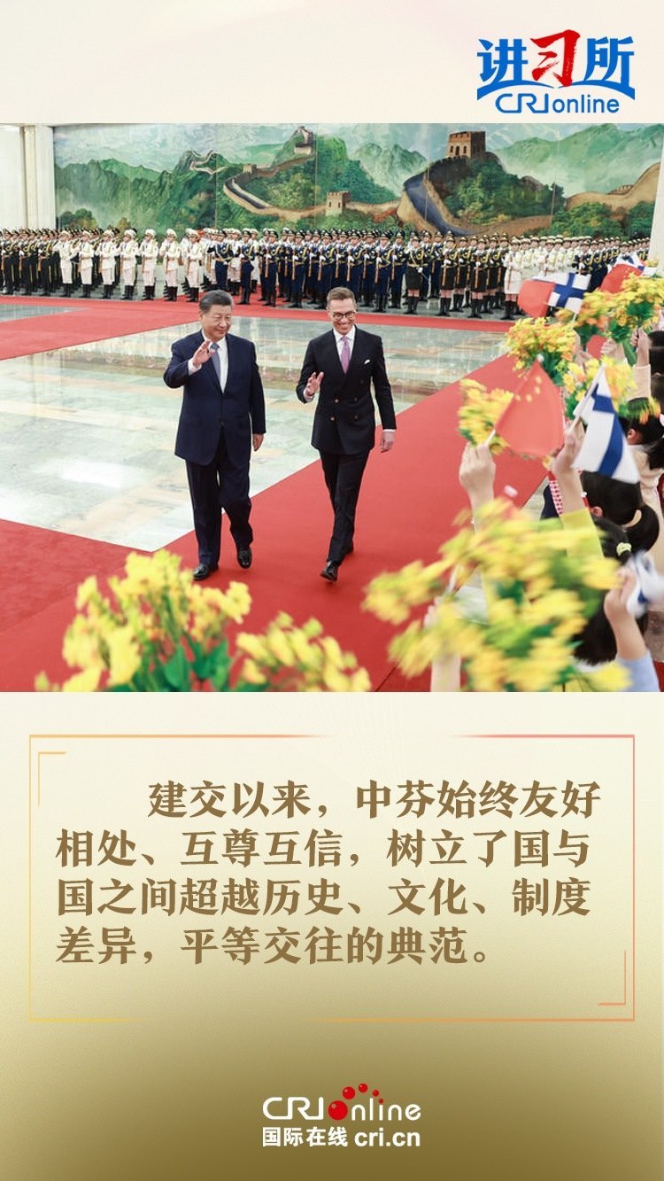 習(xí)近平指出,建交以來(lái),中芬始終友好相處、互尊互信,樹(shù)立了國(guó)與國(guó)之間超越歷史、文化、制度差異,平等交往的典范。中方愿同芬方一道,加強(qiáng)戰(zhàn)略合作,弘揚(yáng)友好傳統(tǒng),將中芬面向未來(lái)的新型合作伙伴關(guān)系進(jìn)一步推向前進(jìn),更好造福兩國(guó)和兩國(guó)人民,為世界和平和發(fā)展作出新貢獻(xiàn)。