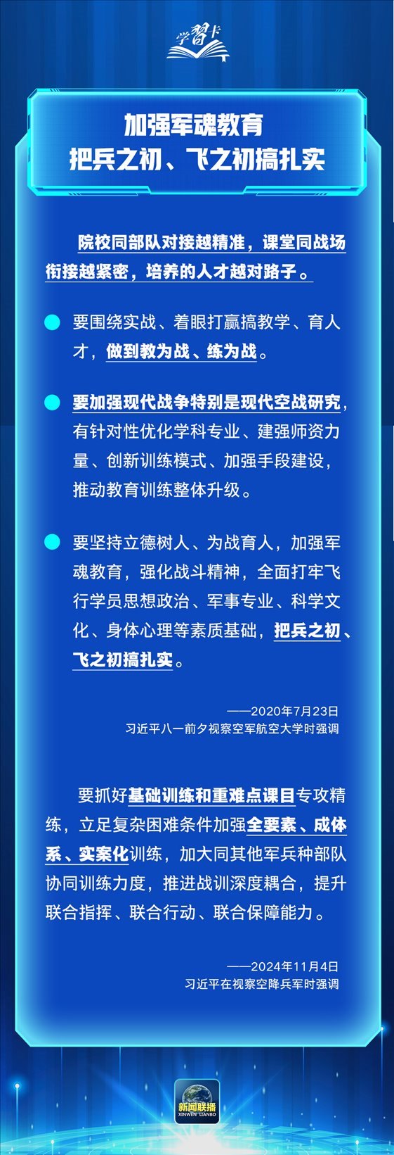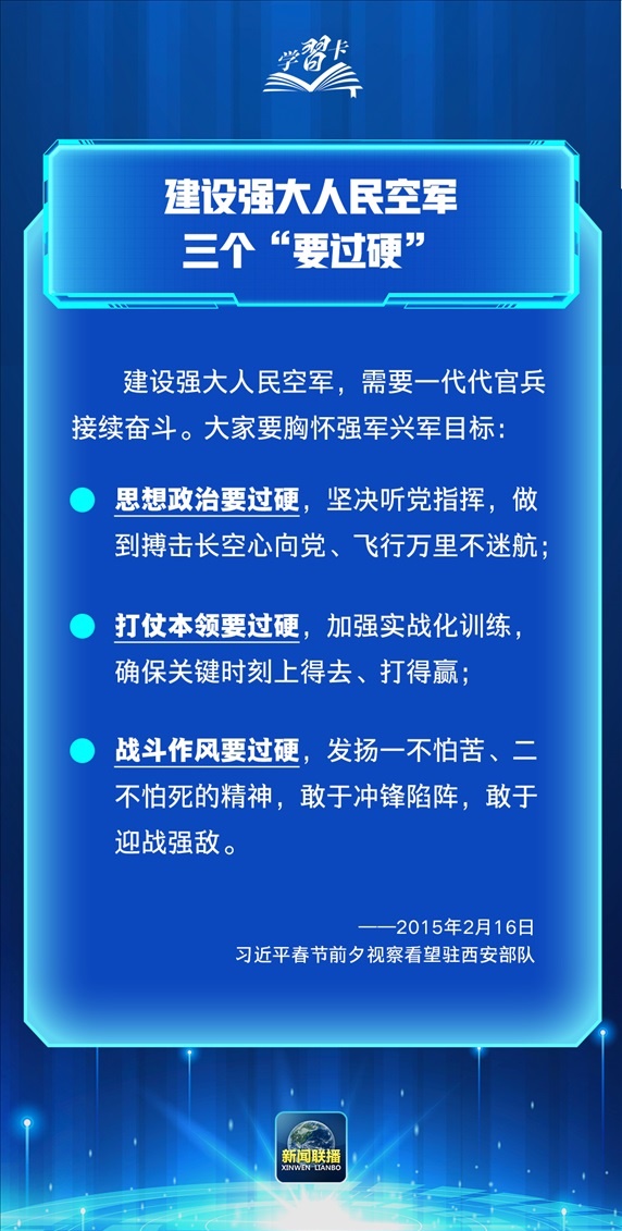 2024年11月11日,是中國(guó)人民解放軍空軍成立75周年紀(jì)念日。在黨的堅(jiān)強(qiáng)領(lǐng)導(dǎo)下,一代代空軍官兵胸懷凌云壯志,搏擊萬(wàn)里長(zhǎng)空,推動(dòng)空軍建設(shè)取得舉世矚目的成就,為維護(hù)國(guó)家主權(quán)、安全、發(fā)展利益建立了不朽功勛。如何把人民空軍全面建成世界一流空軍?一起學(xué)習(xí)↓