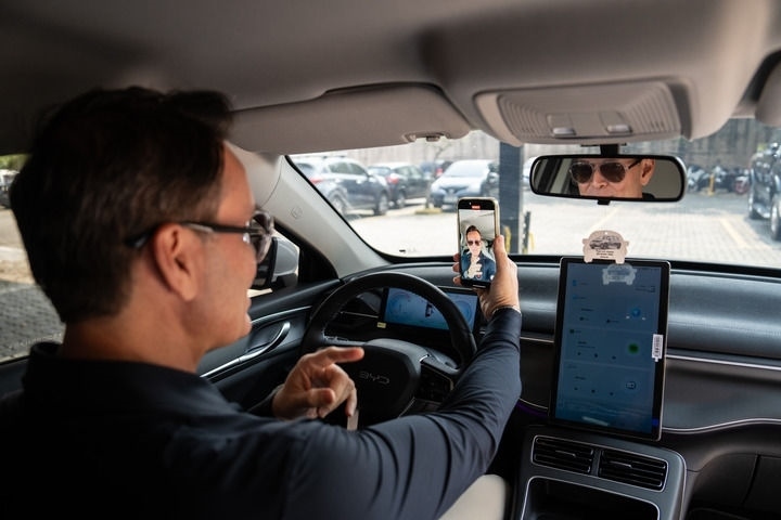 2024年9月2日,巴西網(wǎng)紅費(fèi)利佩·費(fèi)拉在里約熱內(nèi)盧的汽車改裝店中錄制視頻。費(fèi)拉是一名粉絲超過(guò)400萬(wàn)、專門做汽車銷售和改裝的網(wǎng)紅,由于他經(jīng)常推薦純電動(dòng)或者混合動(dòng)力新款車型,也被稱為巴西新能源車“民間大使”。每逢周末,費(fèi)拉都會(huì)受邀去各品牌的4S店,包括中國(guó)品牌比亞迪在內(nèi)的多家在巴車企都與他簽約,在門店開業(yè)或新車型上市時(shí)邀請(qǐng)他出席。新華社記者 王天聰 攝