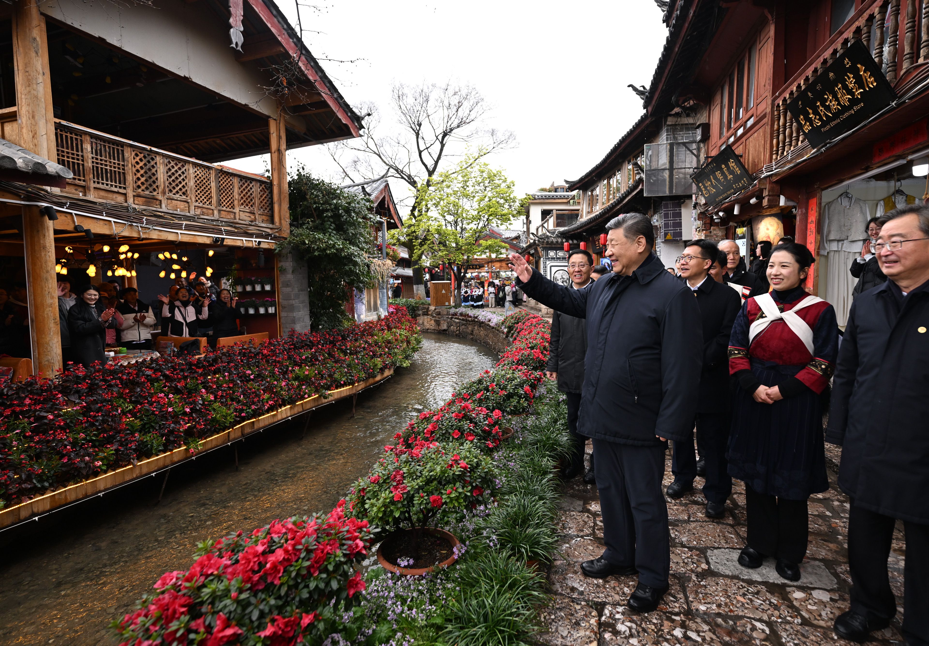 習(xí)近平總書記19日下午來到云南麗江古城,沿著石板路邊走邊看。當(dāng)?shù)鼐用窈脱赝居慰褪譄崆榈叵蚩倳泦柡茫?xí)近平不時停下腳步同大家親切交流。習(xí)近平說,這里的文化、風(fēng)光、民俗都非常吸引人,文旅融合促進(jìn)了經(jīng)濟(jì)發(fā)展。文旅產(chǎn)業(yè)要走一條持續(xù)、健康的發(fā)展之路。希望你們的生活幸福安康,就像納西族的大姓“和”姓一樣,和和美美。