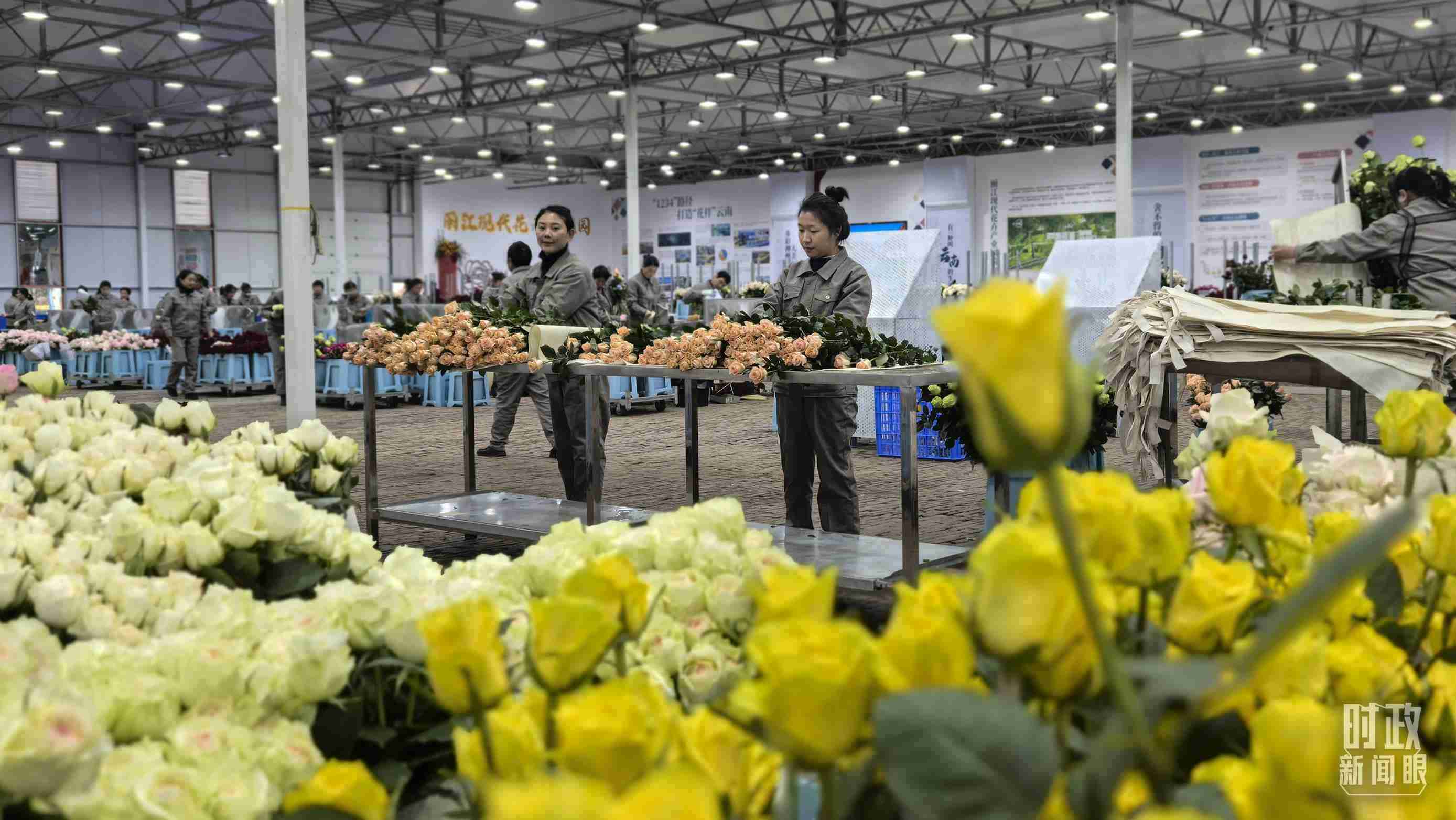 △工人正在對采摘下來的鮮花進行整理、分類。(總臺央視記者邢彬拍攝)