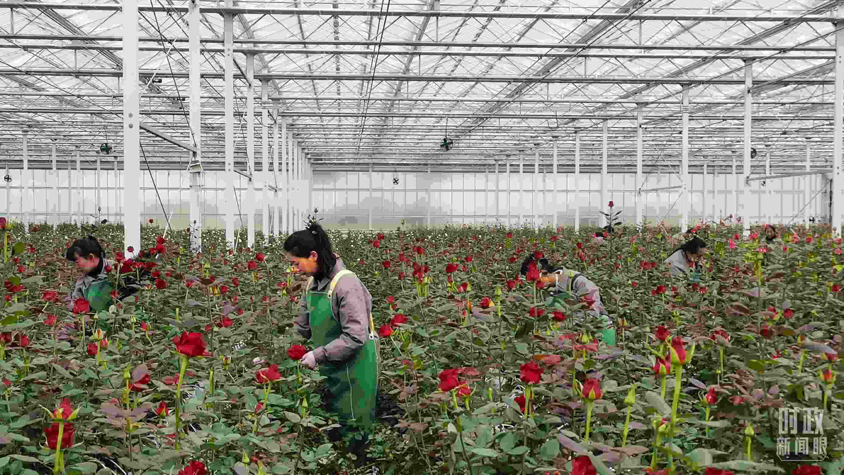 △產(chǎn)業(yè)園的智能溫室大棚里,花開正艷。(總臺央視記者范一鳴拍攝)