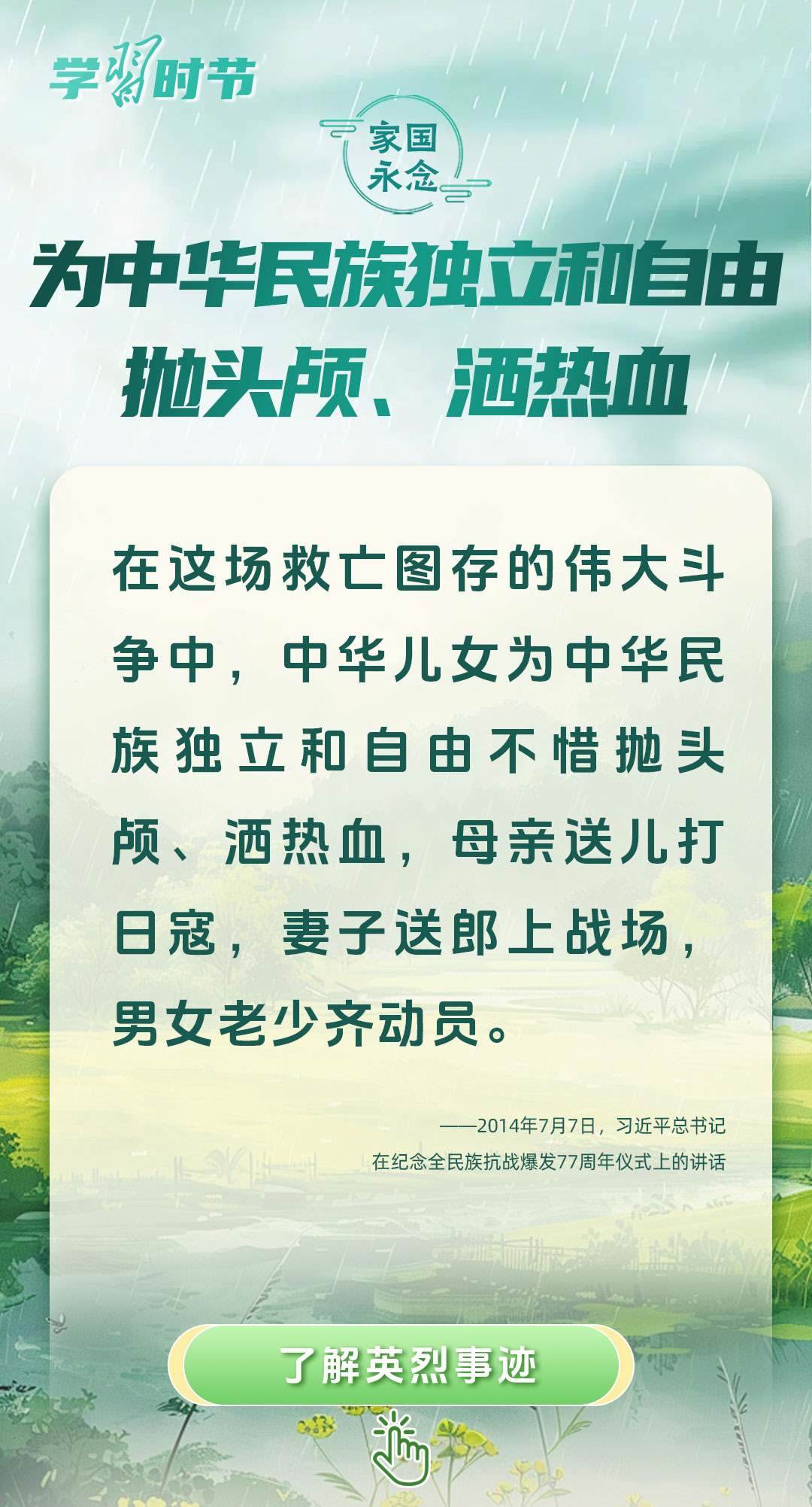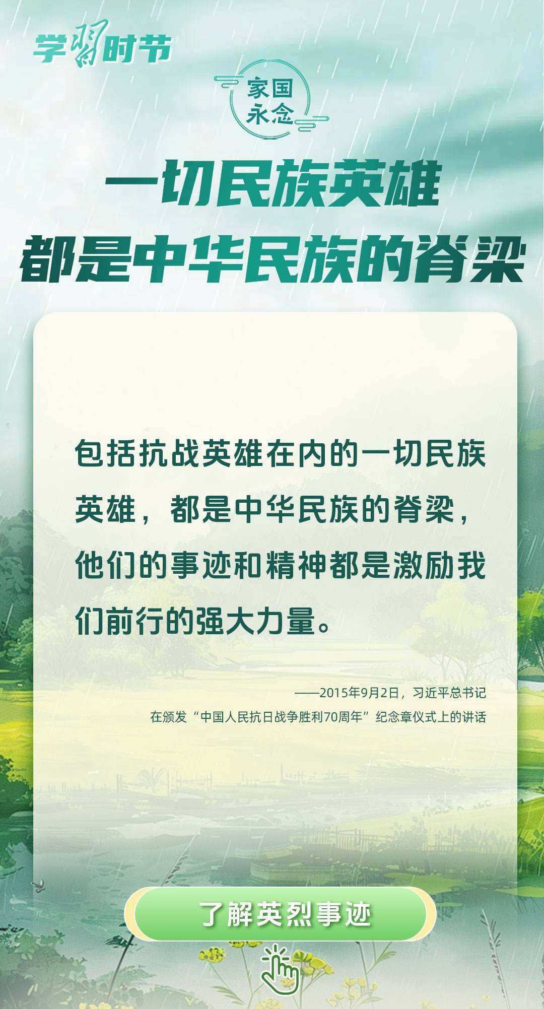 今年是中國(guó)人民抗日戰(zhàn)爭(zhēng)暨世界反法西斯戰(zhàn)爭(zhēng)勝利80周年、中國(guó)人民志愿軍抗美援朝出國(guó)作戰(zhàn)75周年。習(xí)近平總書記曾說(shuō):“對(duì)一切為國(guó)家、為民族、為和平付出寶貴生命的人們,不管時(shí)代怎樣變化,我們都要永遠(yuǎn)銘記他們的犧牲和奉獻(xiàn)。”今天我們所擁有的一切,無(wú)不凝結(jié)著英雄、英烈們的奉獻(xiàn)付出乃至巨大犧牲。