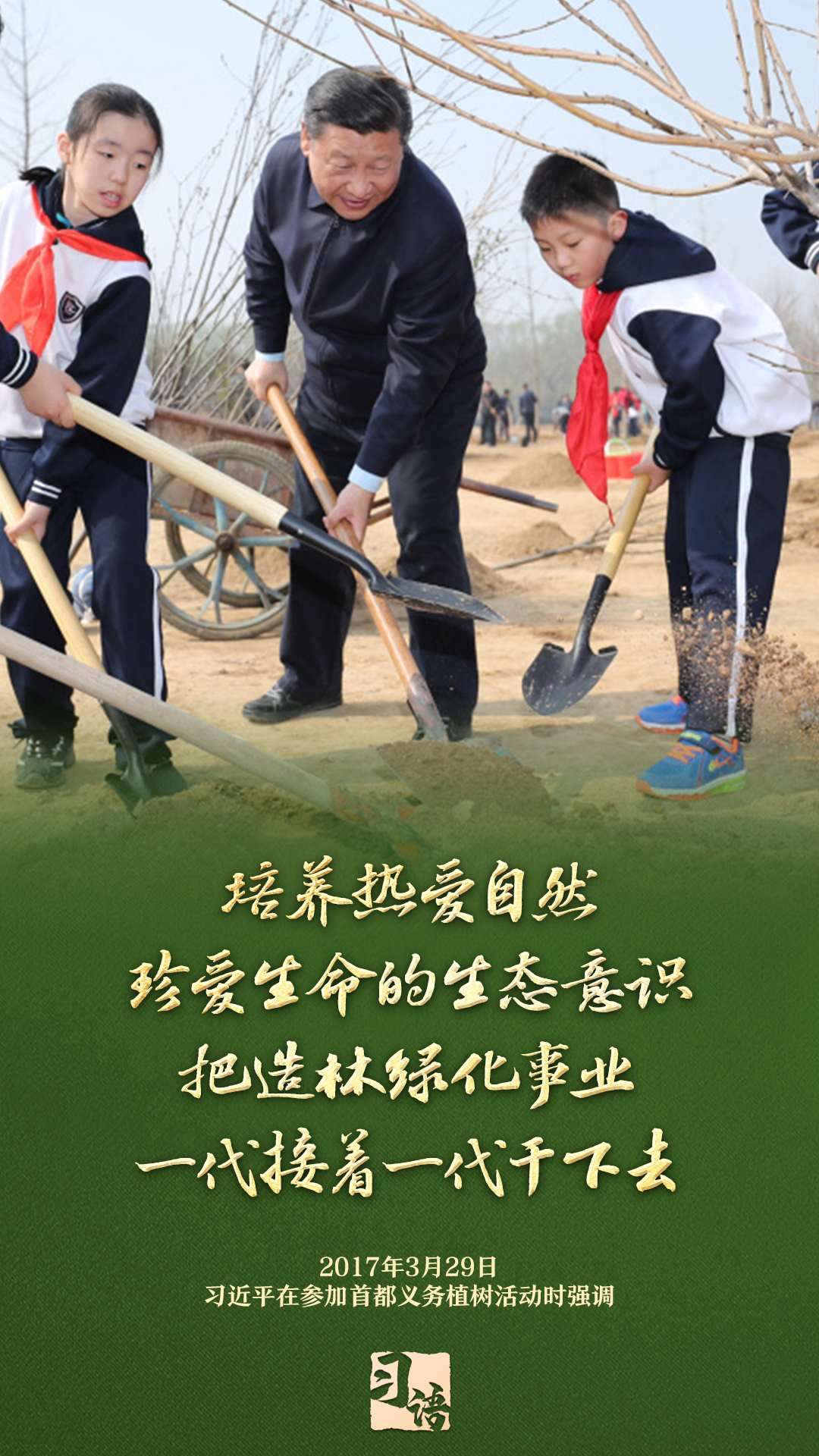 “植樹造林是一件很有意義的事情,是一項功在當(dāng)代、利在千秋的崇高事業(yè),要一以貫之、持續(xù)做下去?!弊?013年以來的13個春天里,無論晴雨,習(xí)近平總書記都會拿起鐵鍬,與干部群眾一起參加首都義務(wù)植樹活動。鏟土造坑、培土圍堰、提水澆灌,總書記身體力行種下綠色的希望,對擴(kuò)綠興綠護(hù)綠、建設(shè)美麗中國提出明確要求。一起學(xué)習(xí)。
