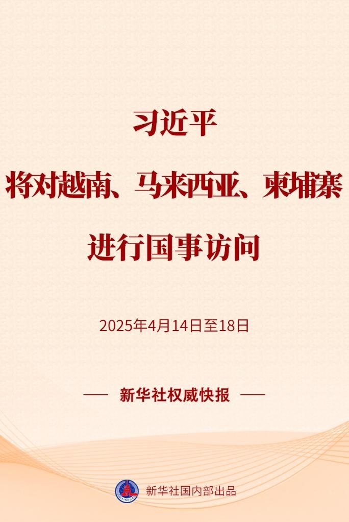 習(xí)近平將于4月14日至18日對(duì)越南、馬來(lái)西亞、柬埔寨進(jìn)行國(guó)事訪(fǎng)問(wèn)。