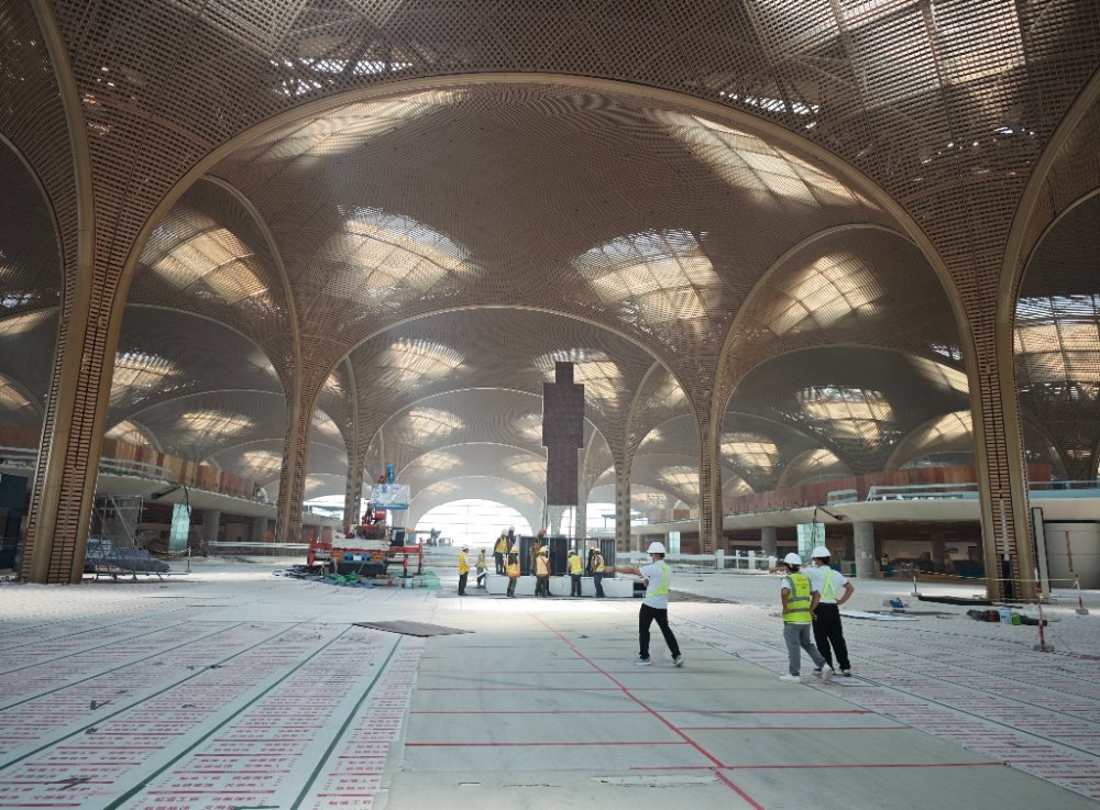 這是2025年3月6日在柬埔寨干丹省拍攝的建設(shè)中的德崇國際機場。新華社發(fā)(萬坡 攝)