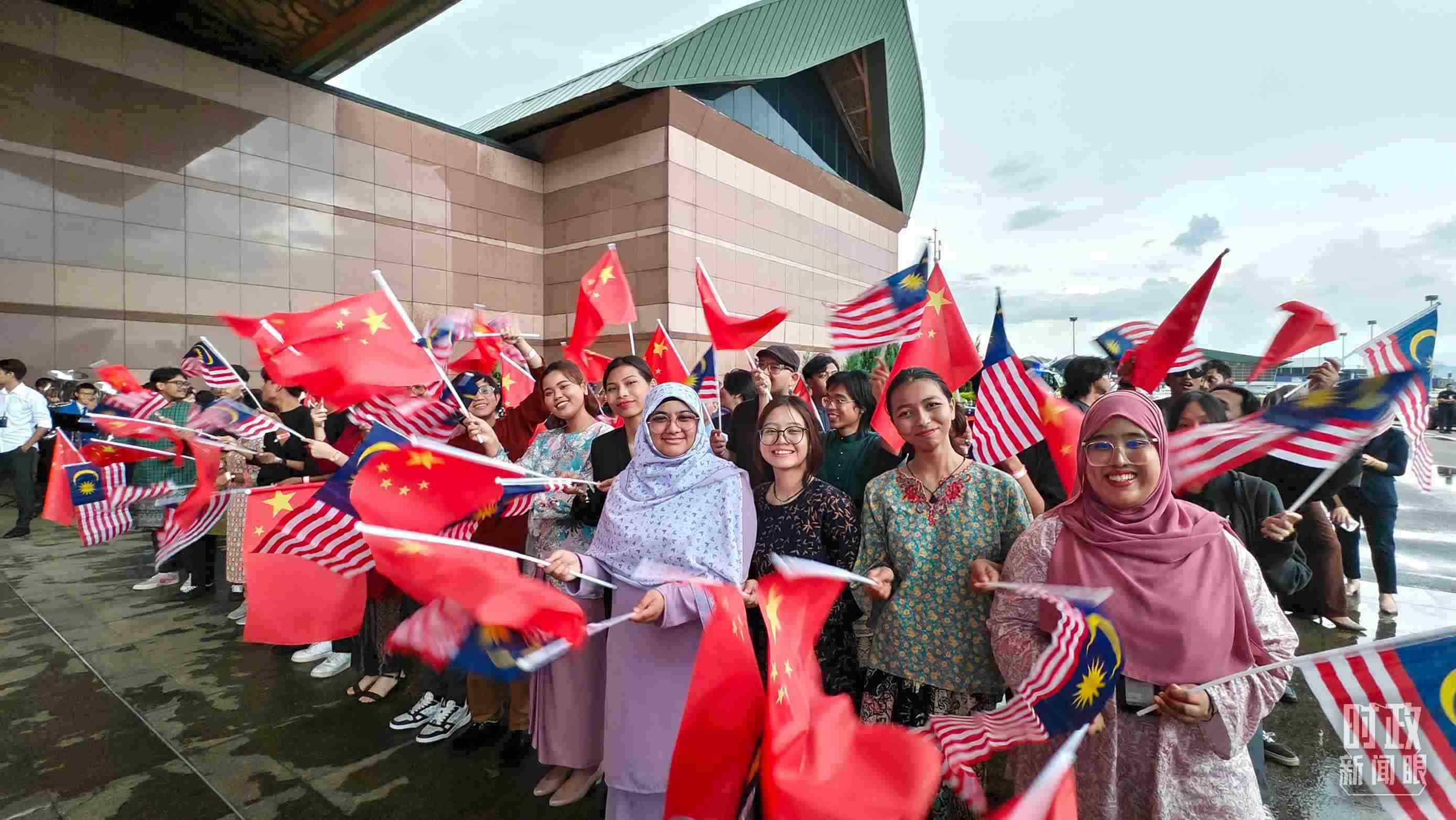 △在機(jī)場迎接習(xí)近平主席的馬來西亞當(dāng)?shù)孛癖姟#偱_央視記者韓銳拍攝)