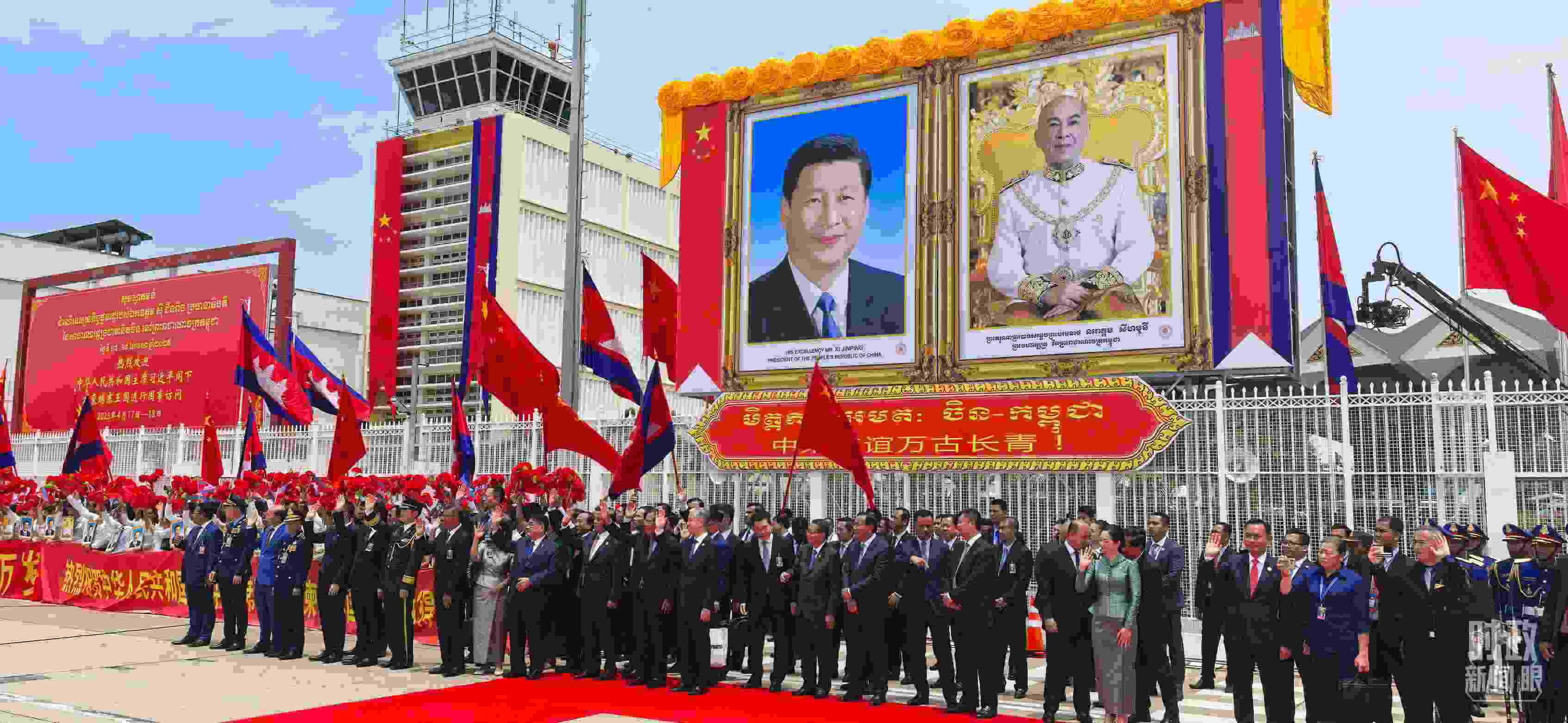 △習(xí)主席離開金邊時(shí),柬埔寨領(lǐng)導(dǎo)人和民眾到機(jī)場送行。(總臺央視記者周志國拍攝)