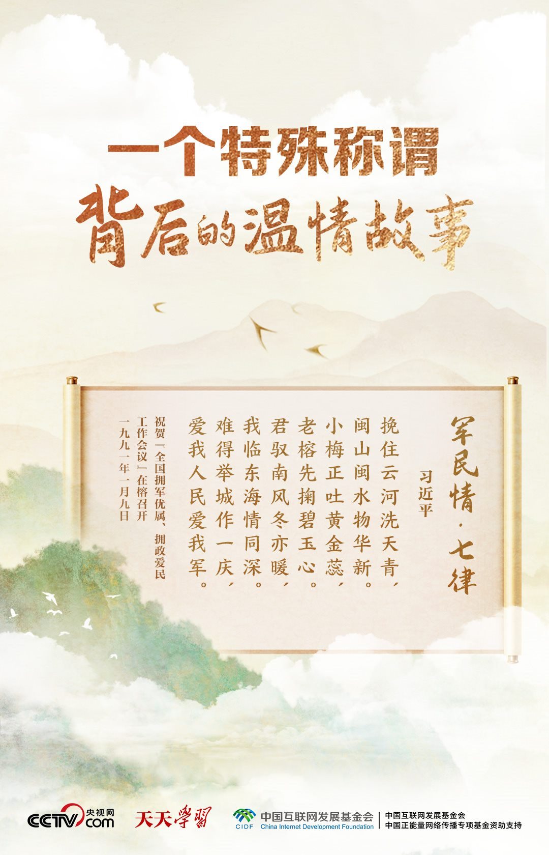 當年在福州工作時,習近平曾賦詩《軍民情·七律》,表達了他對軍隊的深情:“君馭南風冬亦暖,我臨東海情同深。難得舉城作一慶,愛我人民愛我軍。”