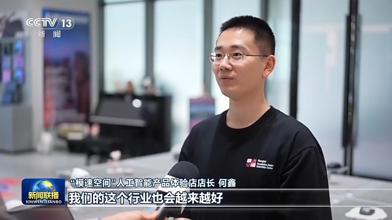 模速空間”人工智能產(chǎn)品體驗(yàn)店店長 何鑫:總書記看得也是非常仔細(xì),總書記也親自試戴了這一款,我們的一個(gè)觀影的眼鏡。它大概有100多英寸的投屏效果。相信有總書記的關(guān)心,我們的這個(gè)行業(yè)也會越來越好。