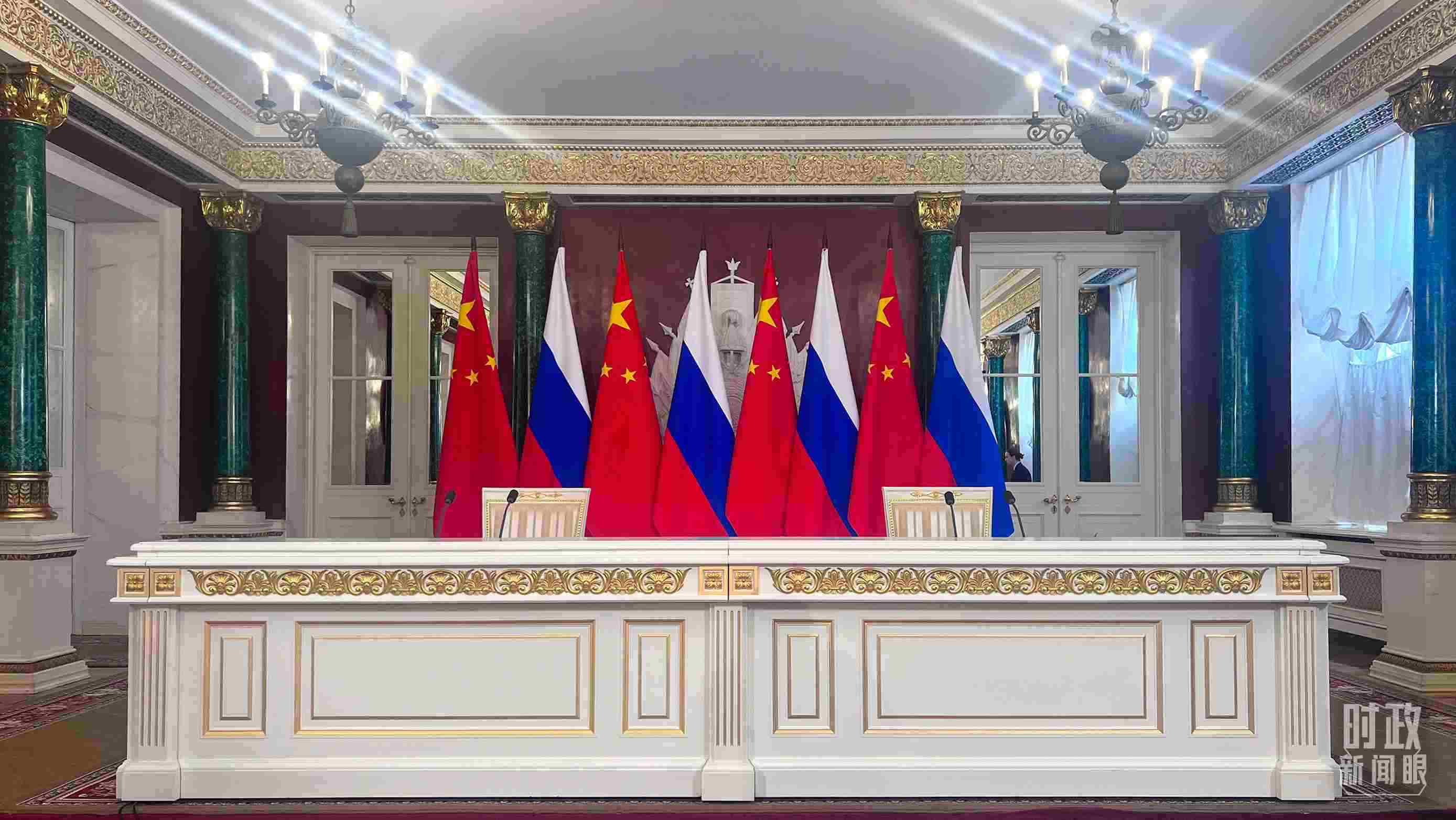 △習(xí)主席和普京總統(tǒng)舉行大范圍會(huì)談的會(huì)場。(總臺(tái)央視記者趙東辰拍攝)