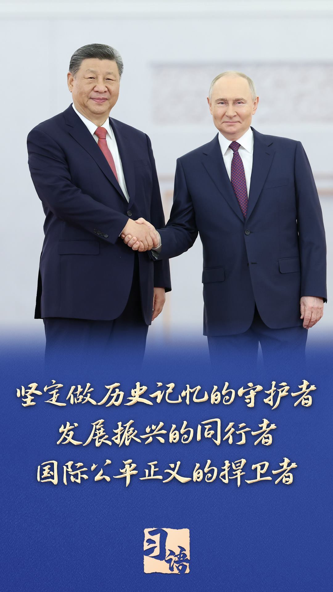 “面對變亂交織的國際形勢,中俄兩國要堅(jiān)定秉持永久睦鄰友好、全面戰(zhàn)略協(xié)作、互利合作共贏精神,風(fēng)雨同渡、關(guān)山共越,全面提升中俄關(guān)系的高度、維度、韌度,為世界和平和安全注入更多穩(wěn)定性,為全球發(fā)展繁榮提供更強(qiáng)推動力?!碑?dāng)?shù)貢r(shí)間5月8日,習(xí)近平在同俄羅斯總統(tǒng)普京共同會見記者時(shí)指出。