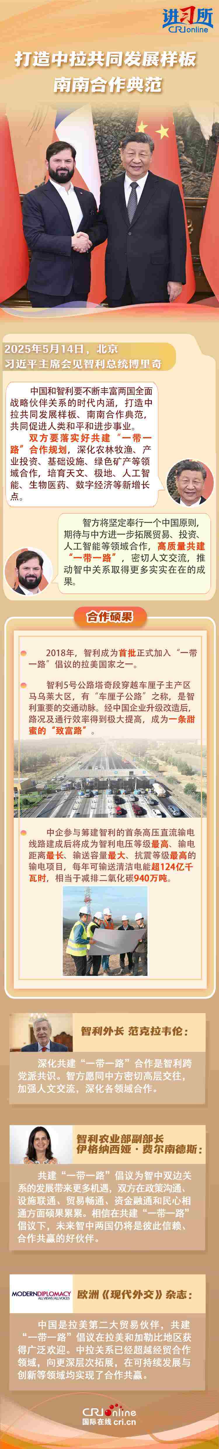 拉方各界人士認為,共建“一帶一路”倡議為中拉雙方帶來更多機遇,應(yīng)持續(xù)通過共建“一帶一路”等方式加強合作、共謀發(fā)展,進一步造?!叭蚰戏健眹?。