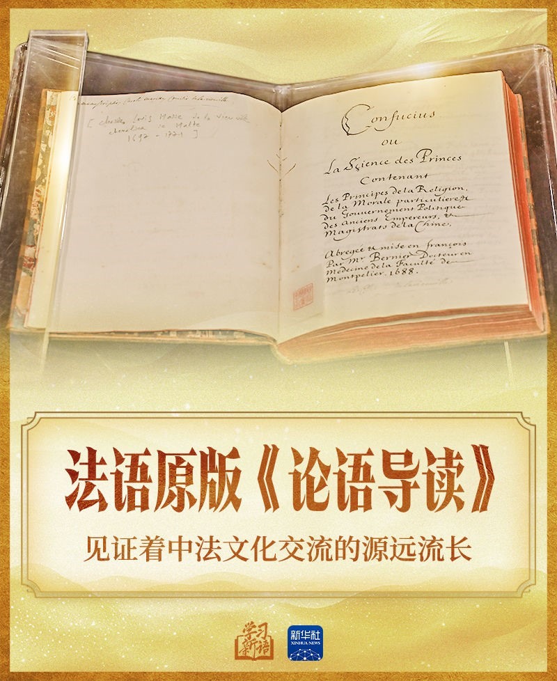 2019年3月,習(xí)近平主席訪法期間收到法國(guó)總統(tǒng)馬克龍贈(zèng)送的珍貴法文古籍《論語導(dǎo)讀》。習(xí)近平主席說:“這個(gè)禮物很珍貴,我要把它帶回去收藏在中國(guó)國(guó)家圖書館?!?/p>