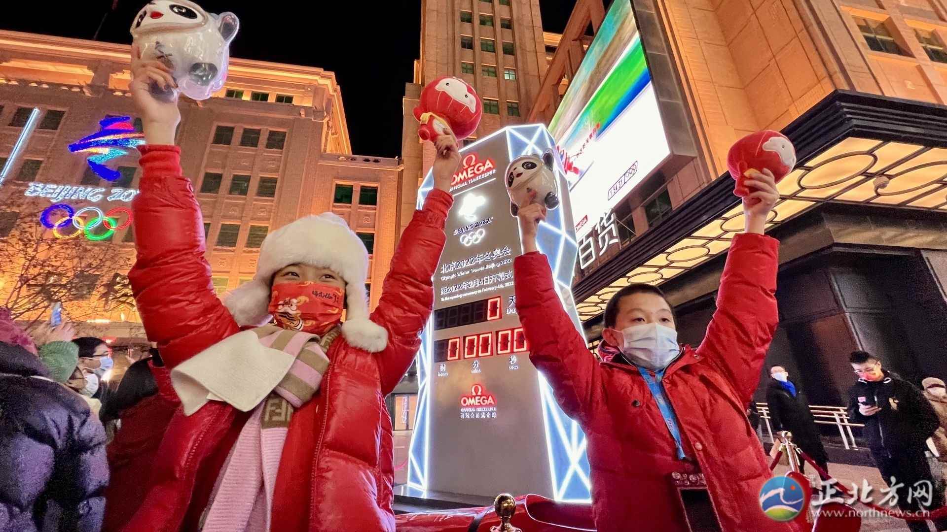 2月4日晚,北京王府井步行街,市民游客一起喜迎北京冬奧會(huì)開幕。(記者牛天甲)