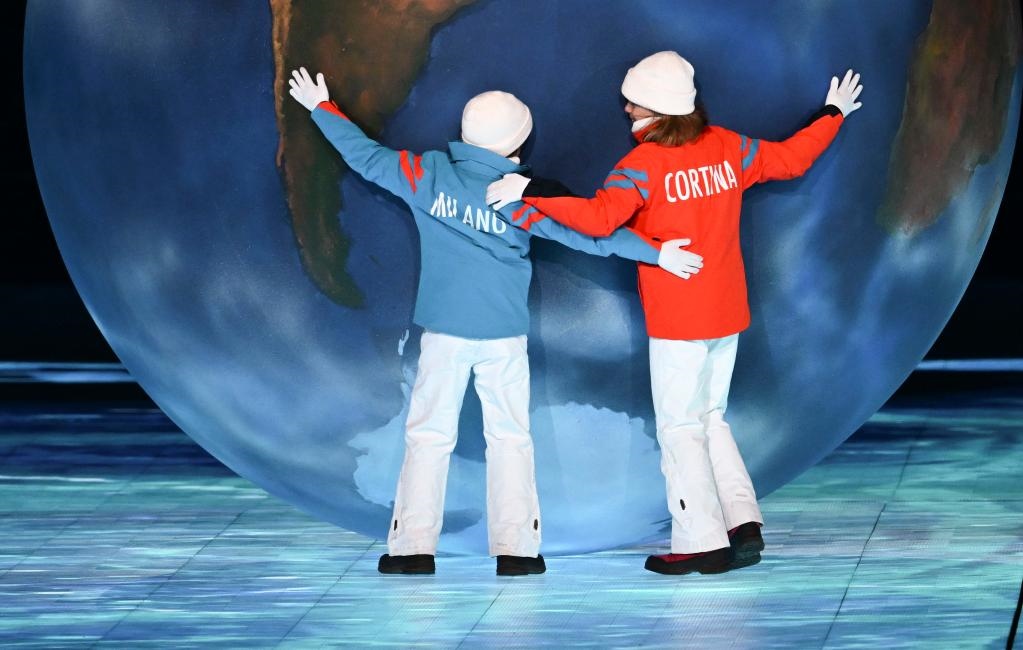 2月20日晚,北京第二十四屆冬季奧林匹克運(yùn)動(dòng)會(huì)閉幕式在國(guó)家體育場(chǎng)舉行。圖為下屆冬奧會(huì)舉辦城市意大利米蘭與科爾蒂納丹佩佐文藝表演“雙城璧合·聚力聯(lián)輝”環(huán)節(jié)。新華社記者李尕?cái)z