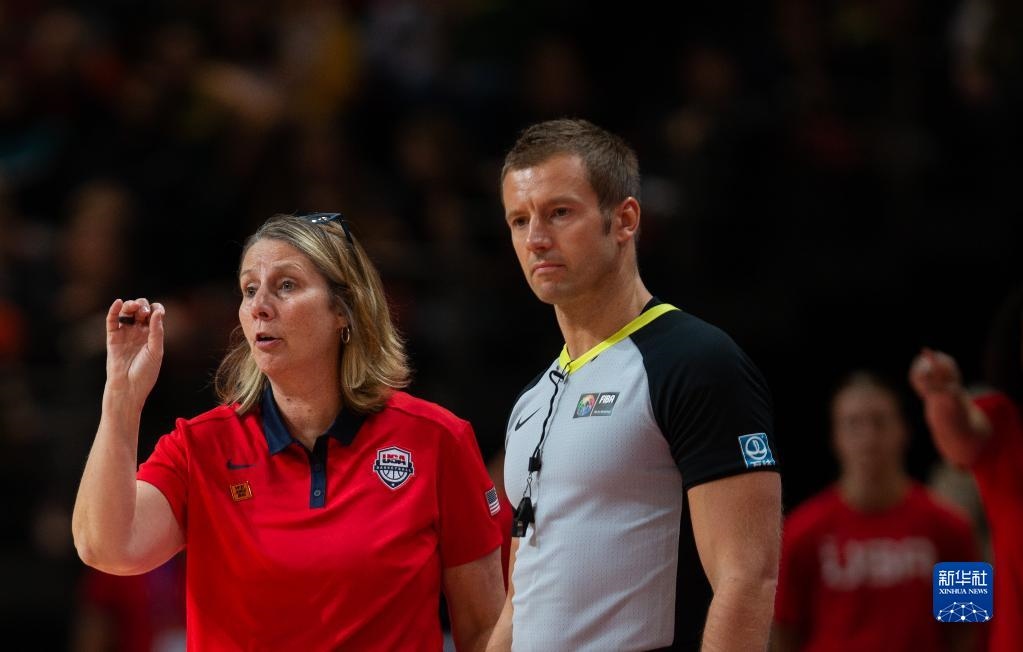10月1日,美國隊(duì)主教練謝麗爾·里夫(左)在比賽中指揮。