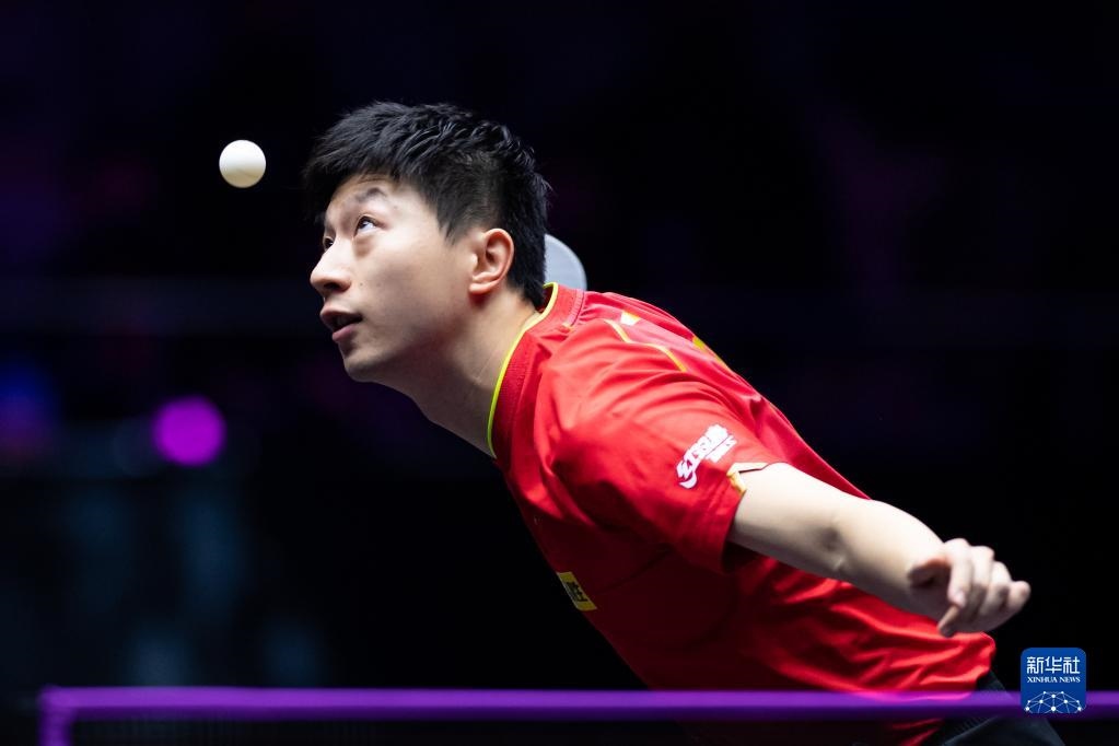 10月19日,馬龍在比賽中回球。新華社記者 張金加 攝