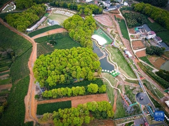 這是3月29日拍攝的諸暨市楓橋鎮(zhèn)陽春村陽春山月游樂度假村(無人機(jī)照片)。當(dāng)?shù)赝ㄟ^閑置荒山土地流轉(zhuǎn)發(fā)展鄉(xiāng)村旅游,幫助當(dāng)?shù)卮迕窈痛寮w增收。