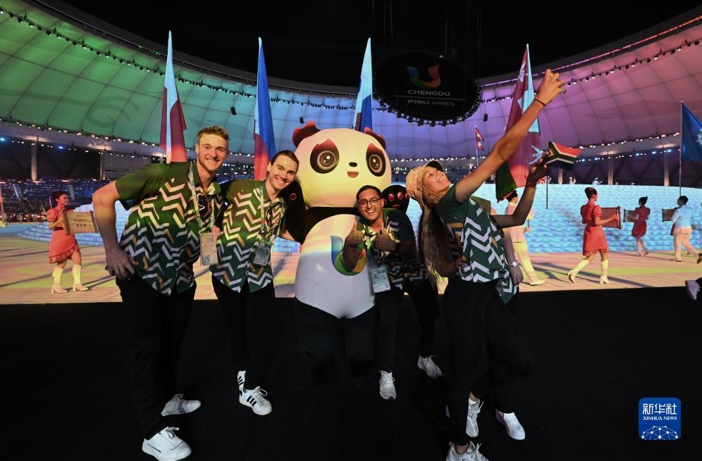 7月28日,南非大學(xué)生體育代表團(tuán)在開幕式上入場(chǎng)。