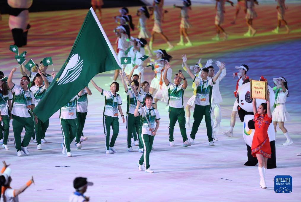 7月28日,中國(guó)澳門大學(xué)生體育代表團(tuán)在開幕式上入場(chǎng)。