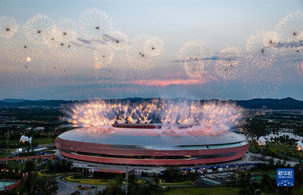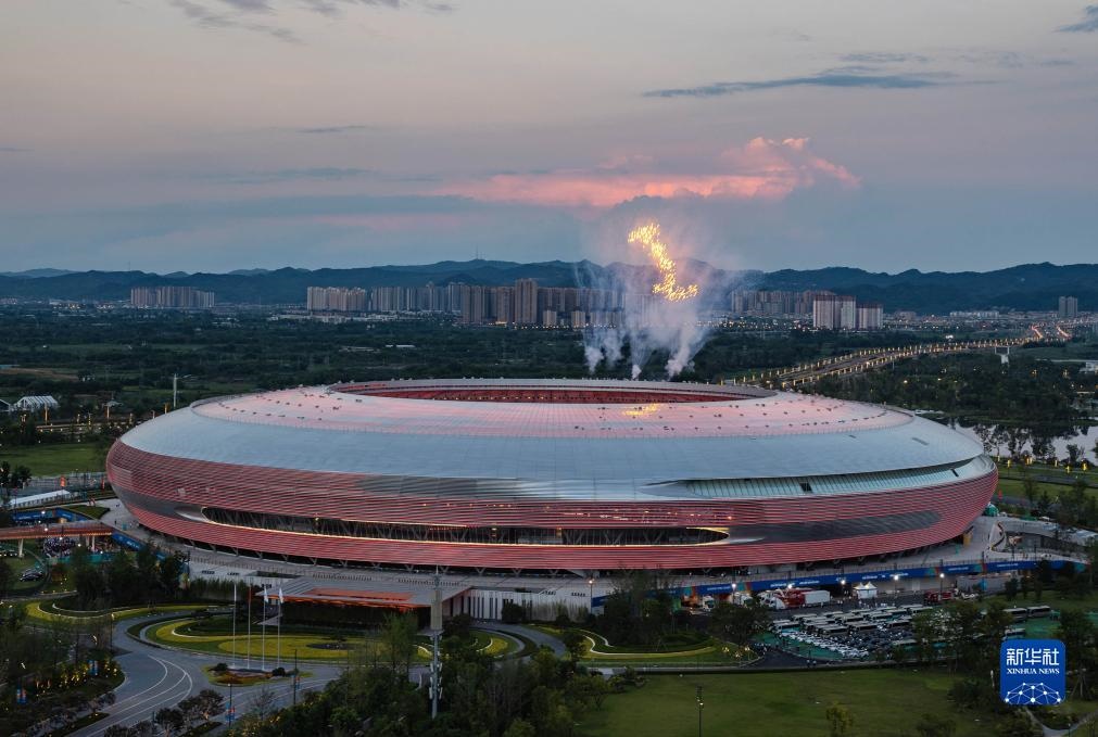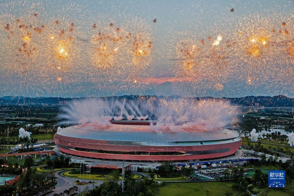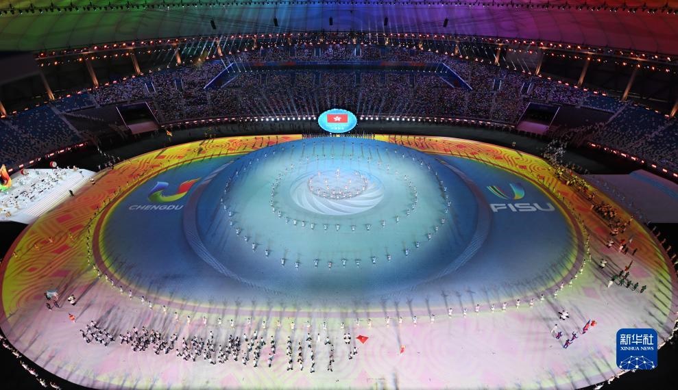 當(dāng)晚,第31屆世界大學(xué)生夏季運(yùn)動(dòng)會(huì)開幕式在成都東安湖體育公園主體育場(chǎng)舉行。