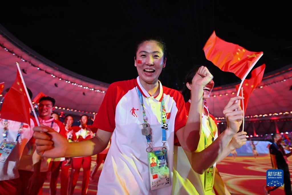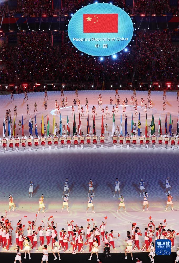 7月28日,中國(guó)大學(xué)生體育代表團(tuán)在開幕式上入場(chǎng)。