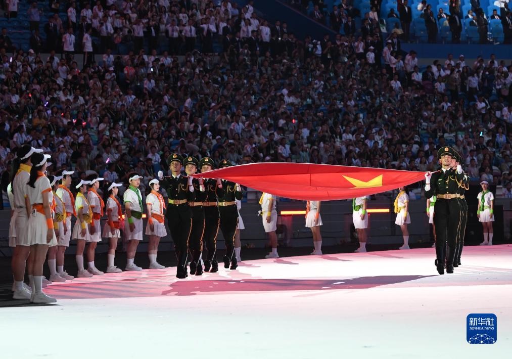 7月28日,中華人民共和國(guó)國(guó)旗入場(chǎng)。