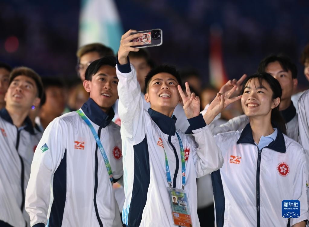 7月28日,中國(guó)香港大學(xué)生體育代表團(tuán)在開幕式上入場(chǎng)。