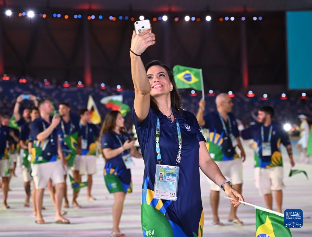 7月28日,巴西大學(xué)生體育代表團(tuán)在開幕式上入場(chǎng)。