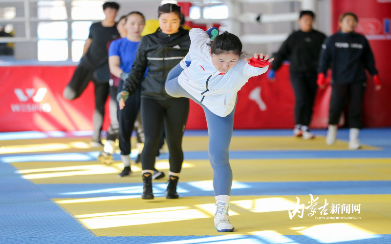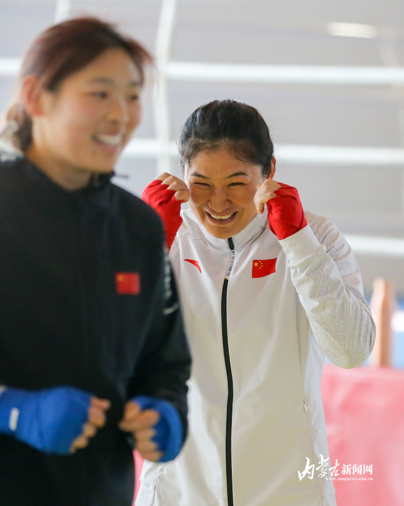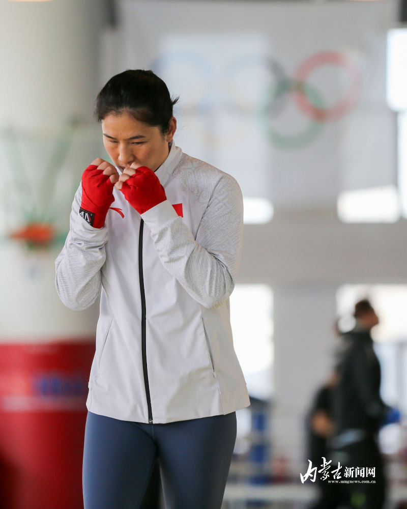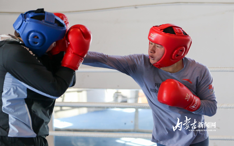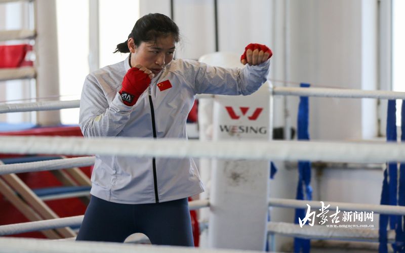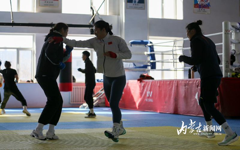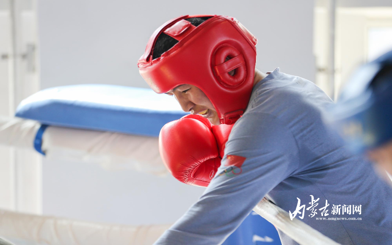 當(dāng)日,記者在拳擊館內(nèi)看到,在訓(xùn)練中李倩腳步輕盈,汗珠在額頭滑落。她戴上拳套,走向沙袋,一記記重拳砸出,發(fā)出沉悶的“砰”聲。內(nèi)蒙古女子拳擊隊(duì)的數(shù)十名拳手正在同時(shí)訓(xùn)練,沙袋晃動(dòng),呼吸急促,空氣中彌漫著汗水與堅(jiān)持的味道。“防守,腳下要穩(wěn)!”內(nèi)蒙古拳擊隊(duì)總教練哈達(dá)巴特爾的聲音在空間回蕩。李倩的訓(xùn)練格外嚴(yán)格。除了常規(guī)力量訓(xùn)練、反應(yīng)訓(xùn)練和體能循環(huán),她還要進(jìn)行一對(duì)一的與男拳手的實(shí)戰(zhàn)模擬,幾次交鋒下來(lái),氣息都愈發(fā)急促。但李倩沒(méi)有退縮,反而越打越穩(wěn),腳步靈活,出拳干凈利落。