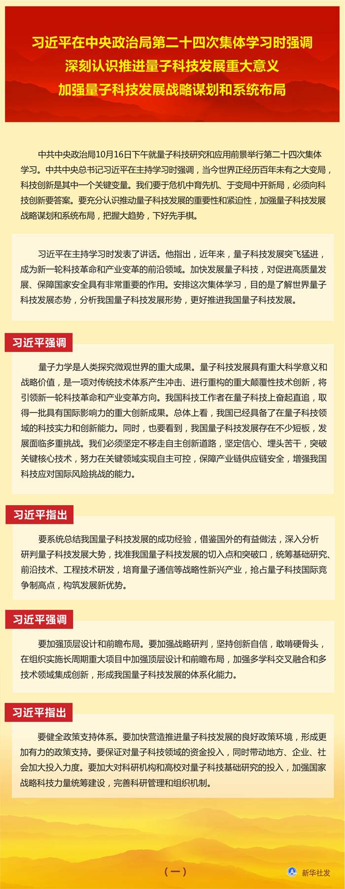 習(xí)近平在中央政治局第二十四次集體學(xué)習(xí)時(shí)強(qiáng)調(diào) 深刻認(rèn)識(shí)推進(jìn)量子科技發(fā)展重大意義 加強(qiáng)量子科技發(fā)展戰(zhàn)略謀劃和系統(tǒng)布局