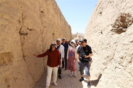 海外華文媒體采訪團一行沿著習(xí)近平總書記的的足跡深入葡萄溝、交河故城等地采訪考察,了解當(dāng)?shù)匕l(fā)展葡萄特色產(chǎn)業(yè)、促進文旅融合發(fā)展以及文化遺產(chǎn)保護利用等情況。