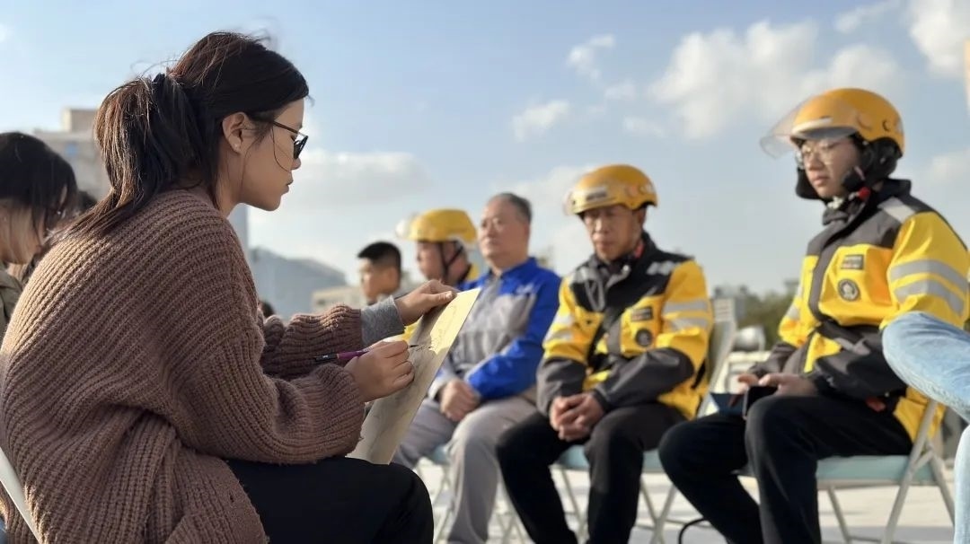 畫(huà)像小組的同學(xué)拿起手中畫(huà)筆,為團(tuán)結(jié)湖南北里社區(qū)老黨員、社區(qū)志愿者、騎手社工畫(huà)像。大家認(rèn)真描繪“模特”們和藹可親的形象,不時(shí)與“模特”聊天互動(dòng),聽(tīng)他們分享自己生活中的精彩故事。除此之外,部分同學(xué)圍繞垃圾分類、廉政教育等主題為社區(qū)繪制黨建板報(bào)。通過(guò)繪制板報(bào),傳播正能量,為社區(qū)宣傳添一份力。