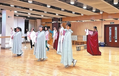 楊楠楠(右二)在學(xué)習(xí)昆曲表演。