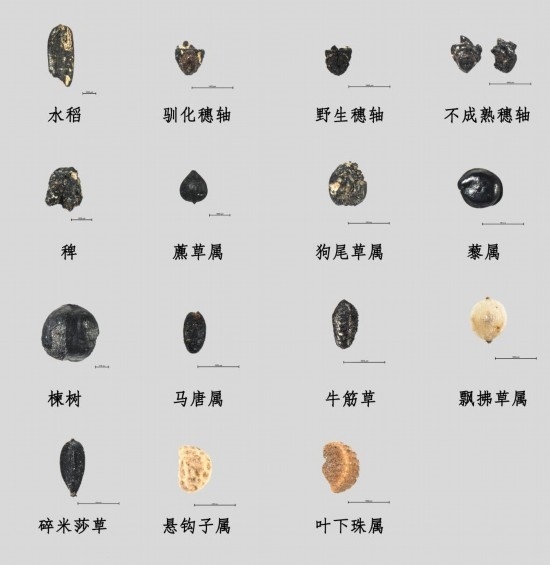 下湯遺址出土上山文化時期植物遺存。(全國十大考古新發(fā)現(xiàn)活動辦公室供圖)