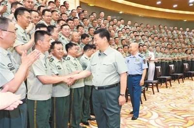 7月15日至16日,中共中央總書記、國家主席、中央軍委主席習(xí)近平在內(nèi)蒙古考察并指導(dǎo)開展“不忘初心、牢記使命”主題教育。這是16日上午,習(xí)近平在呼和浩特親切接見駐內(nèi)蒙古部隊副師職以上領(lǐng)導(dǎo)干部和團(tuán)級單位主官,代表黨中央和中央軍委向駐內(nèi)蒙古部隊全體官兵致以誠摯問候?! ⌒氯A社記者 李 剛攝