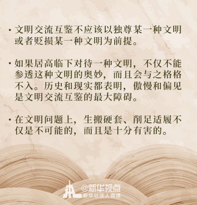 在這次演講中,習近平主席用生動的語言講明了對待不同文明應有的態(tài)度和原則: