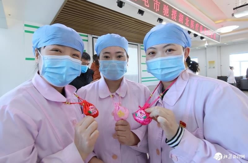 根據(jù)疫情防治需要,呼倫貝爾扎蘭屯市中蒙醫(yī)院醫(yī)療隊的10名護士馳援湖北。2月17日,護士們在出發(fā)前互相加油鼓勁,帶著責任,帶著祝愿,向湖北出發(fā)。(通訊員:韓冷)
