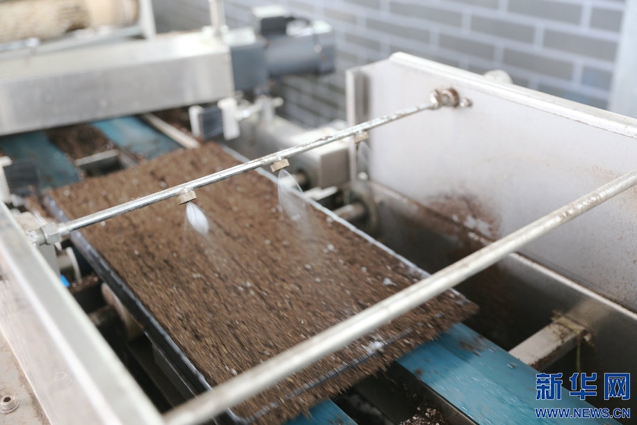 自動(dòng)播種機(jī)通過流水線方式完成播種、澆水流程。新華網(wǎng)曹楨攝