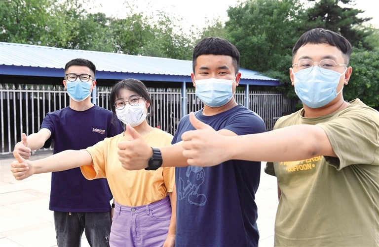 7月6日,提前到高考考點(diǎn)查看考場(chǎng)的首府高三學(xué)子為自己加油鼓勁。