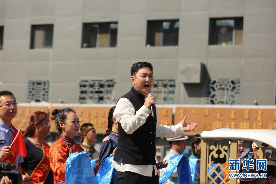歌手呼斯楞在巡游車上演唱草原歌曲。新華網(wǎng) 楊騰格爾攝
