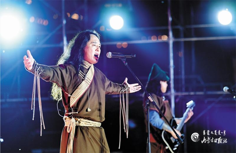 8月16日晚,助演嘉賓藍(lán)野樂隊激情獻(xiàn)唱。內(nèi)蒙古日報記者 王磊 懷特烏勒斯 攝